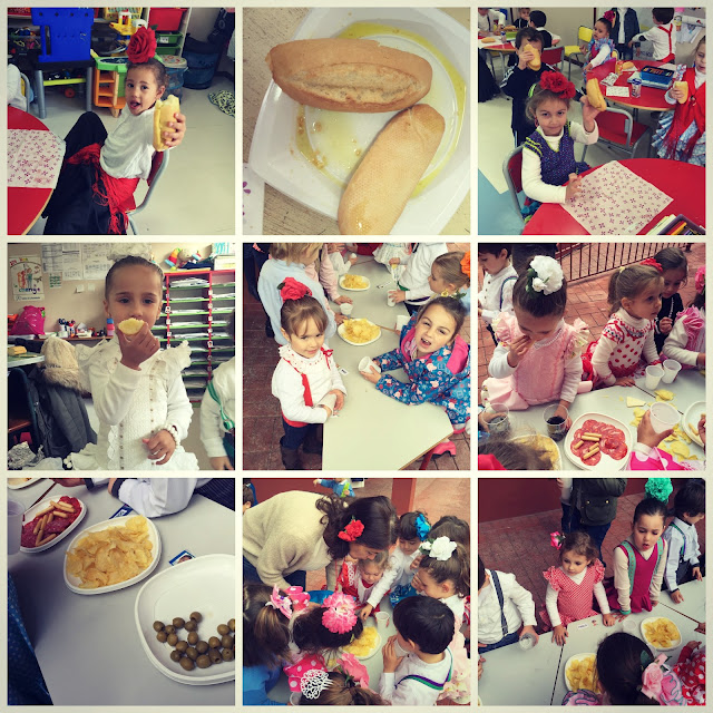 Luego llega nuestro desayuno andaluz en clase. Pan con aceite de nuestros olivos que además de delicioso es parte de una dieta copiada por muchos países por ser de las más saludables. Una educación intrínseca en este día tan especial.